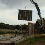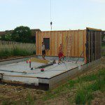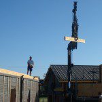 Une fois les murs ossatures bois posés, la charpente a tout de suite été mise en place afin de mettre la structure hors d’eau rapidement